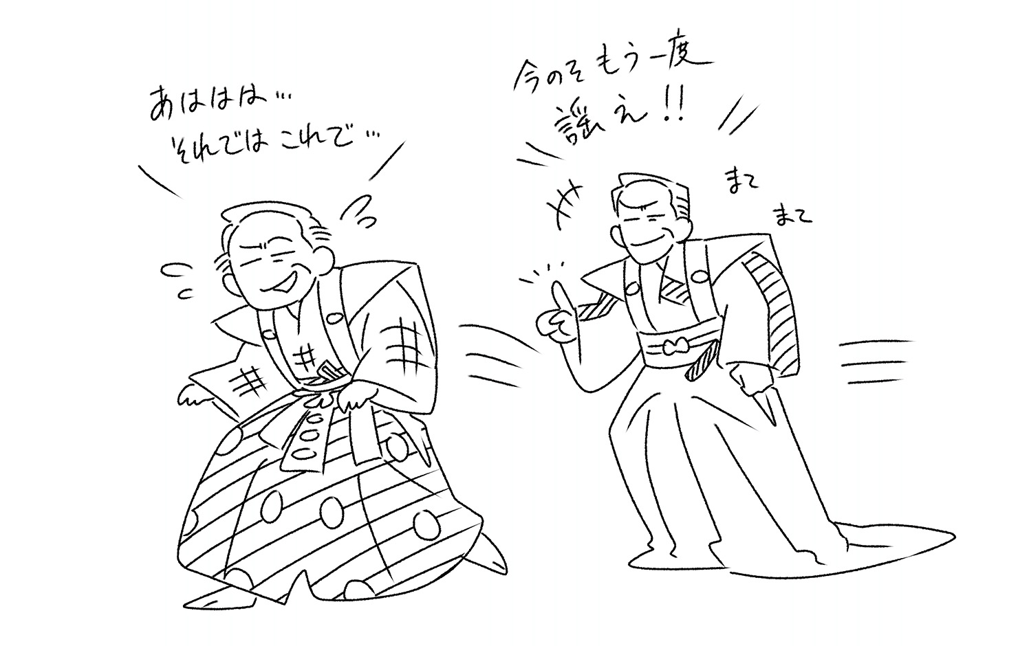 どうしても謡が聞きたい主人と、断りたい太郎冠者。幼少からの主従関係は、歴然とした身分の隔てがありながら、それを越えて親密です。
