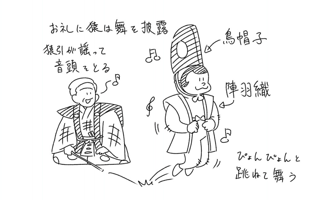 猿引は命を助けてもらえたお礼に、猿に舞を舞わせようと提案します。